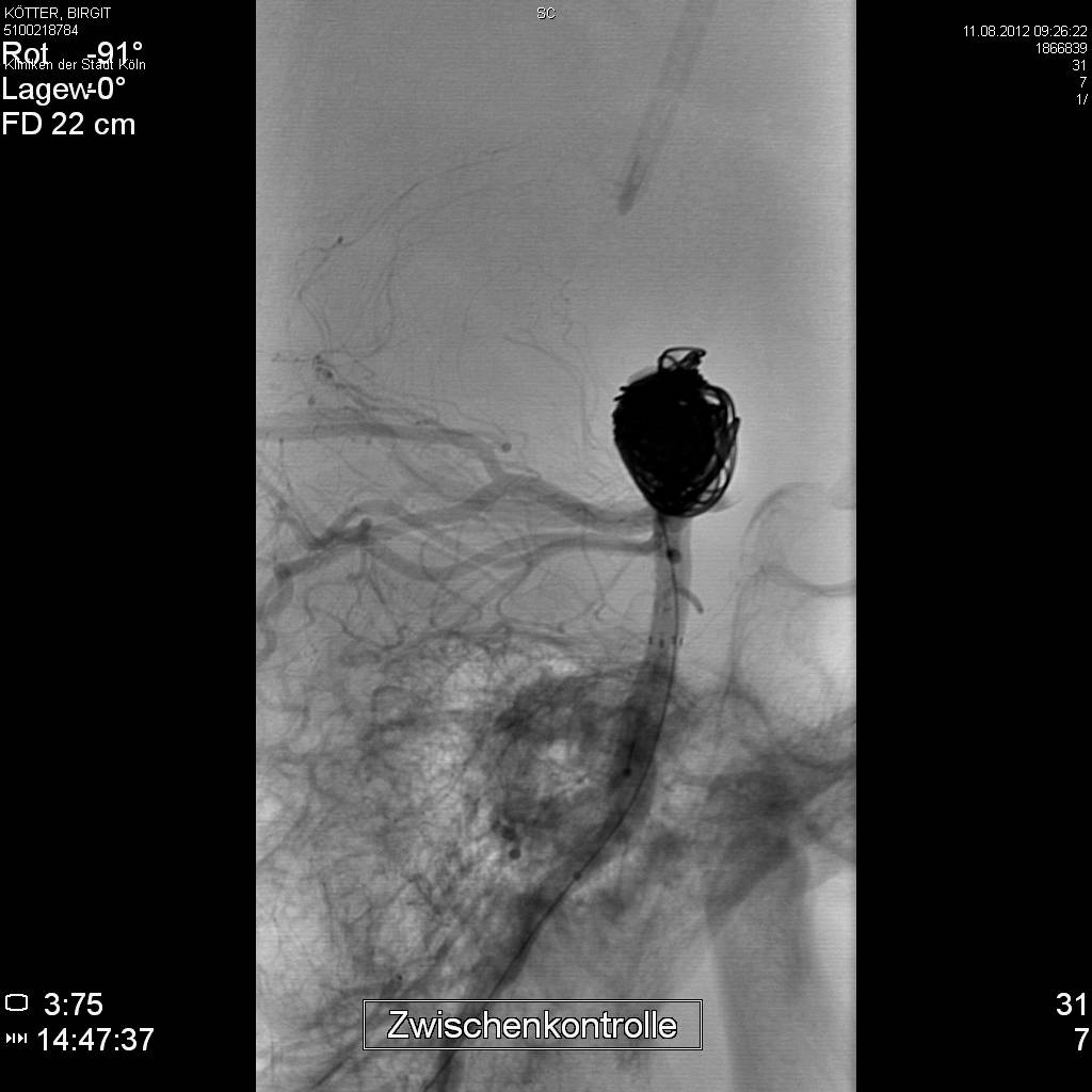 Am 11.08.2012 wurde das Aneurysma mittels des Coiling-Verfahren verfüllt: