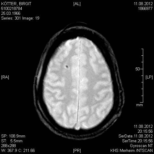 In den Aufnahmen vom 11.08.2012 sind noch eindeutig die Gehirnstrukturen zu erkennen: