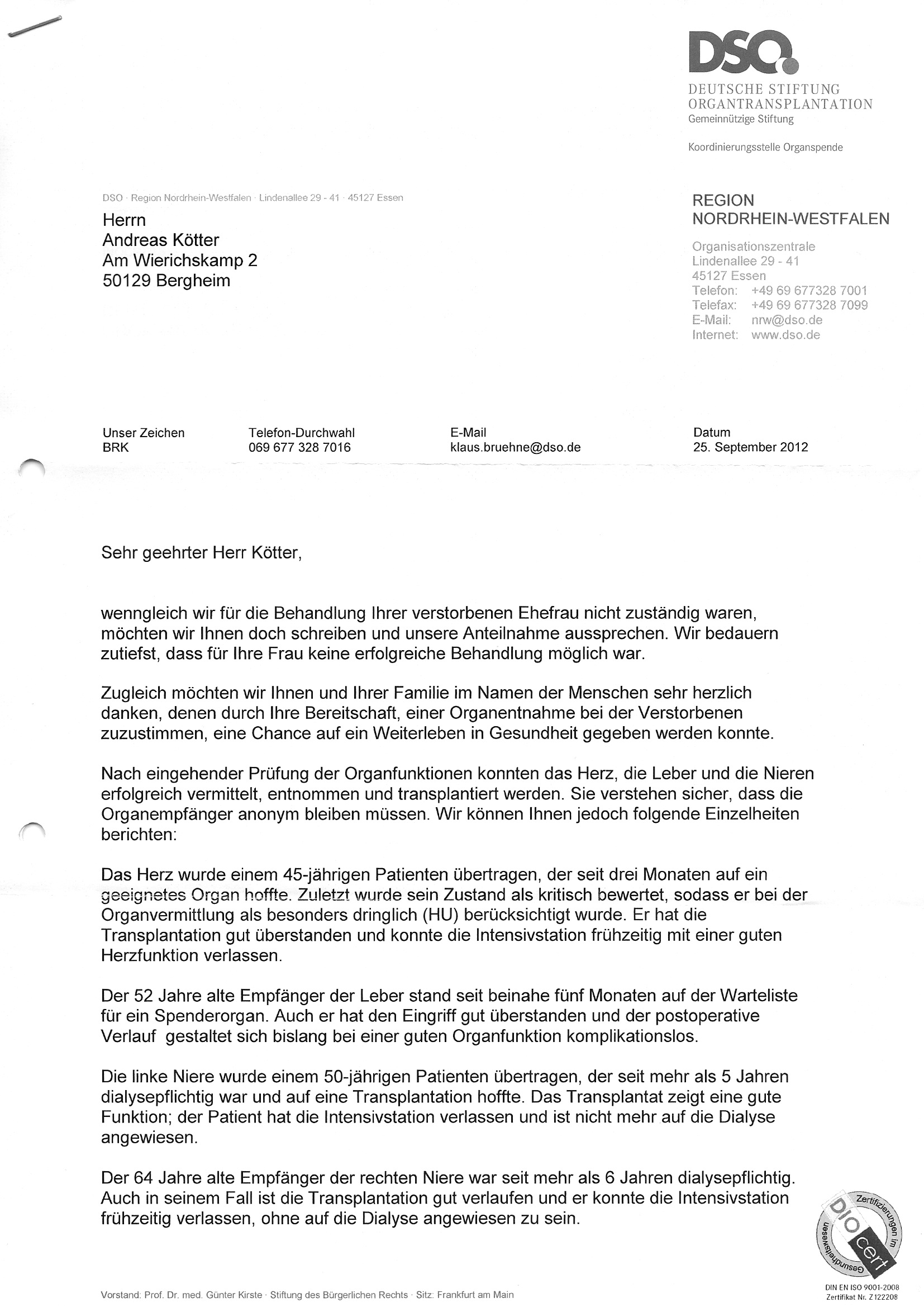 Hier der Brief, den Julia und ich im September 2012 von der DSO erhalten haben: